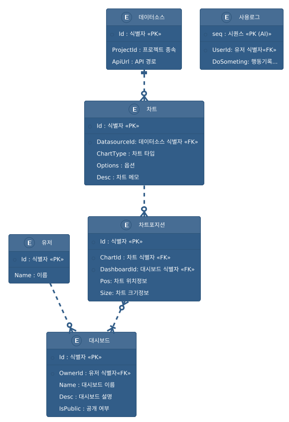 서비스를 설계할 때 보통 DB 구조부터 설계하고 개발을 시작하는 편인데, ERD의 경우 여러가지 DB툴에서 제공하긴 하지만 간략한 초기 모델을 표현할 때는 PlantUML을 사용하면 편리하게 표현할 수 있다.